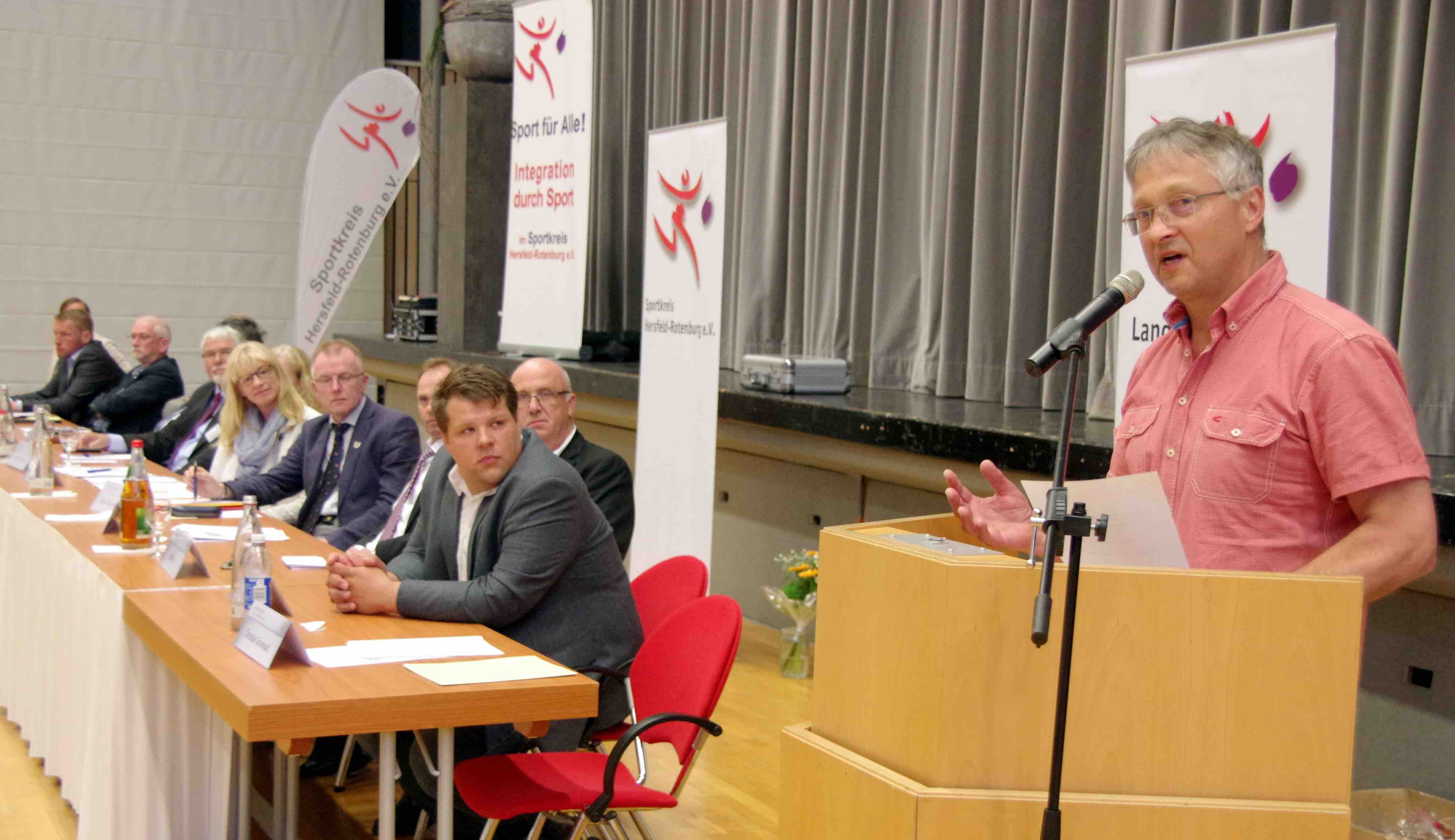 Dr. Rolf Müller, Präsident des Landessportbundes Hessen, war Wahlleiter beim Sportkreistag in Göbel Hotels Arena in Rotenburg.