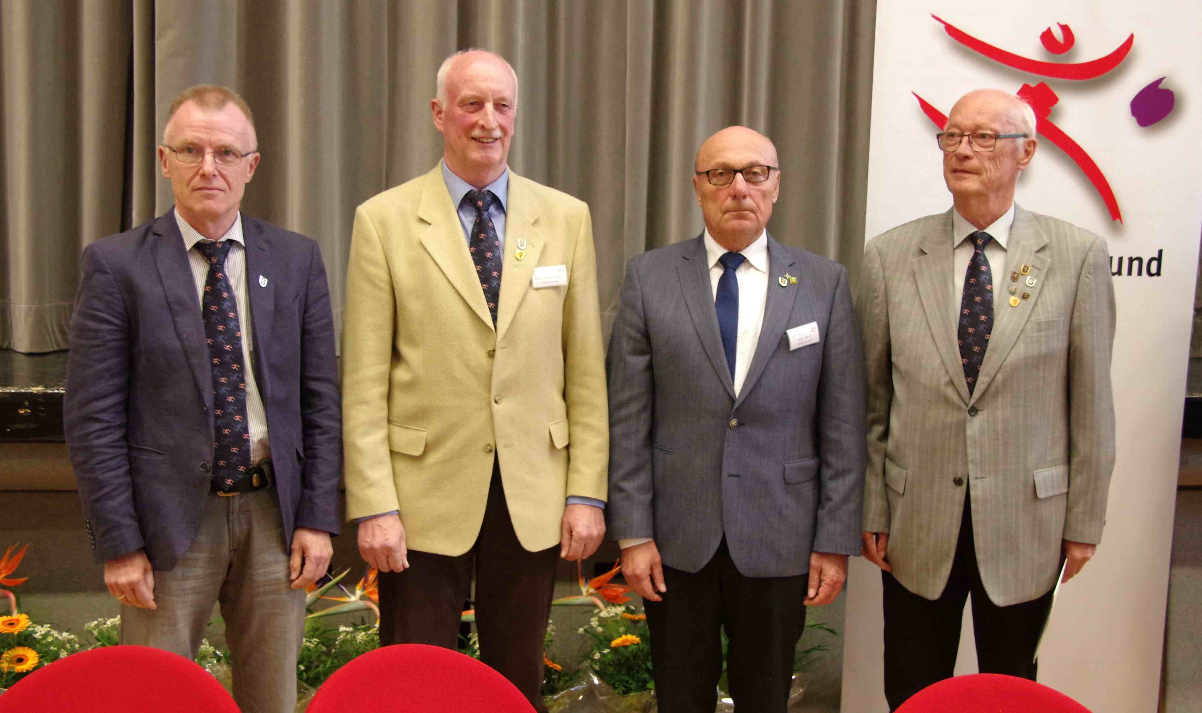 Vorsitzender Paul Mähler die Ehrennadel in Gold, die stellvertretenden Vorsitzenden Klaus Ronkowski und Horst Holl sowie Schriftführer Klaus-Dieter Ratz die Ehrennadeln in Silber sowie